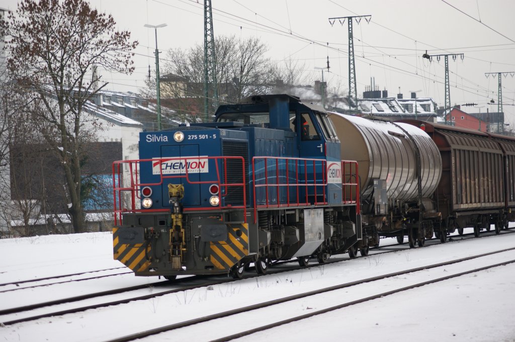 (Mak G1206) 275 501-5 (Silvia) von Chemion bei der Durchfahrt mit einem Chemikalienzug in Köln-West am 28.12.2010.