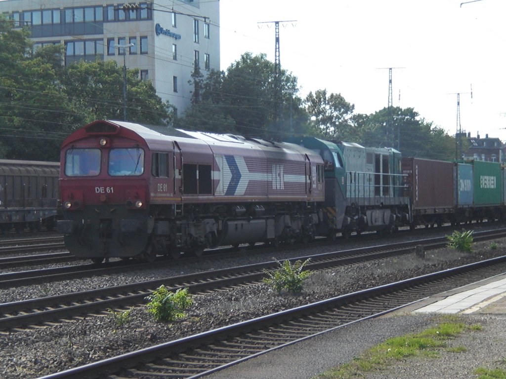 Class66 (DE 61) und G2000 von der HGK mit einem Conainerzug in Köln-West.