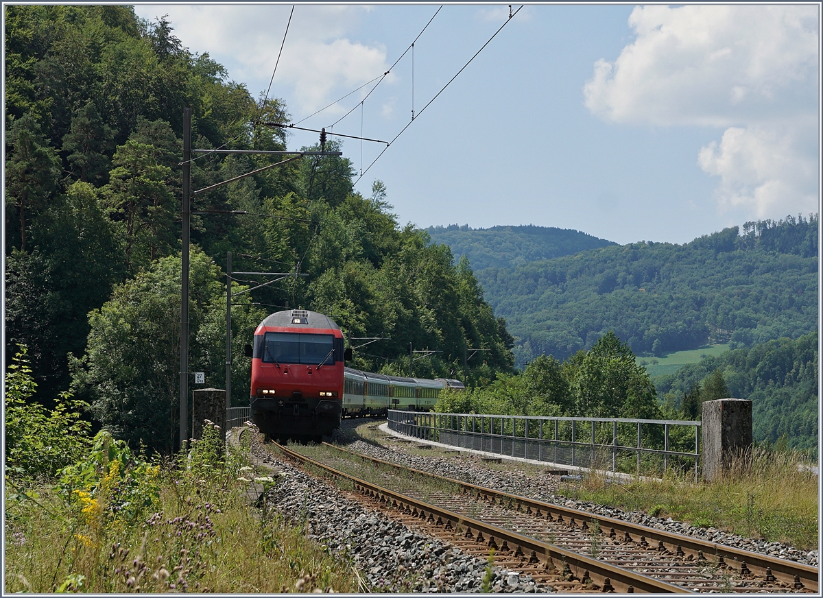 Zwei DB 185 mit der Spitzenlok 185 088 ziehen einen Baustellen bedingt umgeleiteten Güterzug über die "Alte Hauenstein Linie".