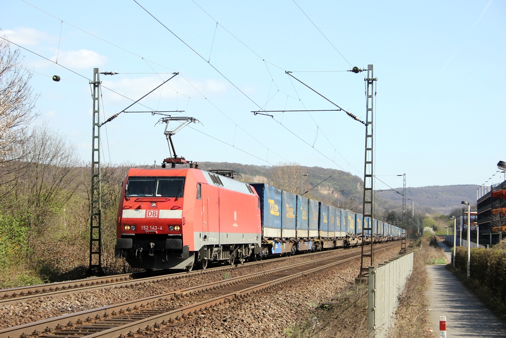 DB 152 143-4 mit dem LKW Walter Ganzzug in Limperich am 1.4.2012