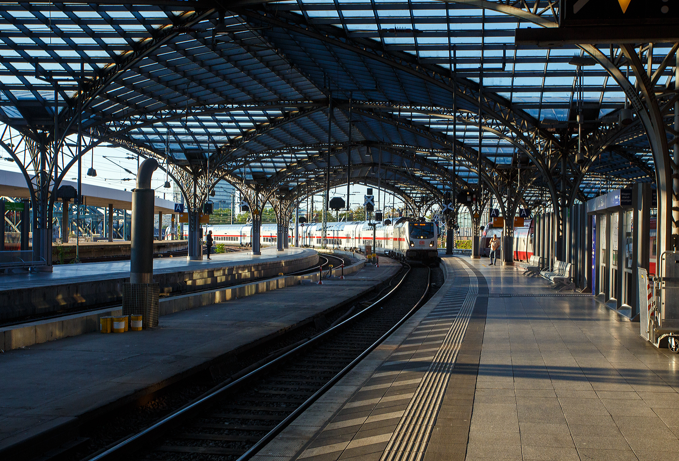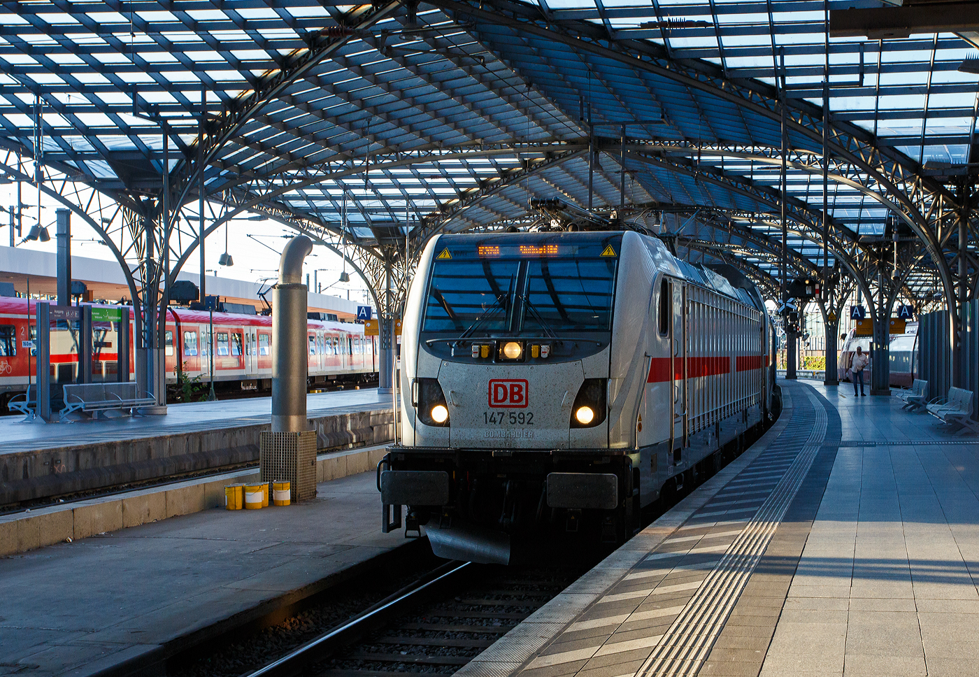 Die 147 592 (91 80 6147 592-0 D-DB – IC 4877) der DB Fernverkehr AG fährt am Morgen des 01 Juli 2025, mit dem IC 2040 (Münster Hbf – Köln Hbf – Koblenz Hbf - Stuttgart Hbf), in den Hauptbahnhof Köln ein. Die TRAXX P160 AC3 wurde 2021 von Bombardier in Kassel gebaut und an die DB Fernverkehr AG geliefert. Sie hat die Zulassungen für Deutschland und die Schweiz.