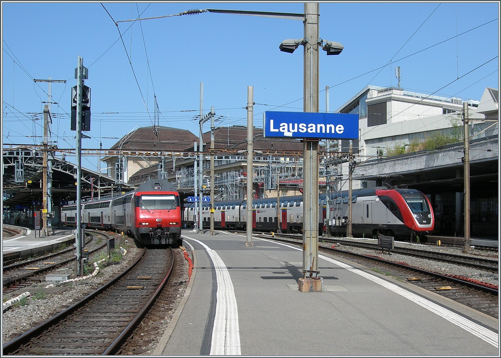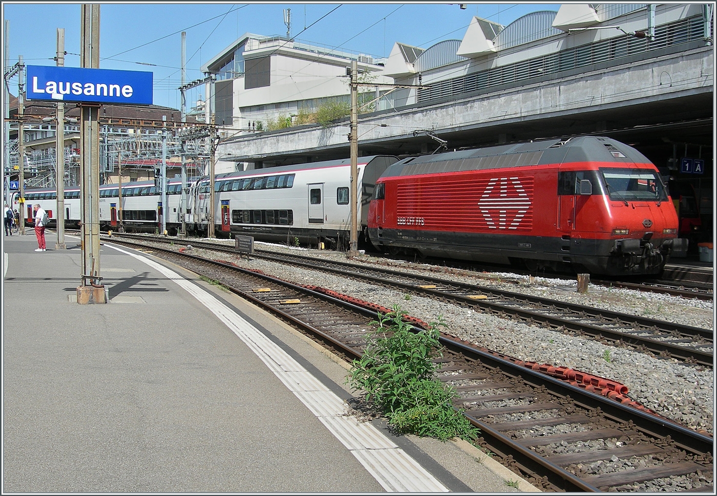 Die SBB Re 460 040-9 fährt mit einem IC nach St.Gallen in Lonay-Préveranges durch.