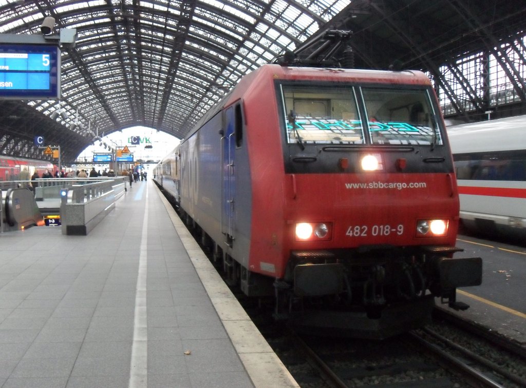 SBB Cargo 482 018-9 mit einem Rheingold Sonderzug im Kölner Hbf am 7.11.10