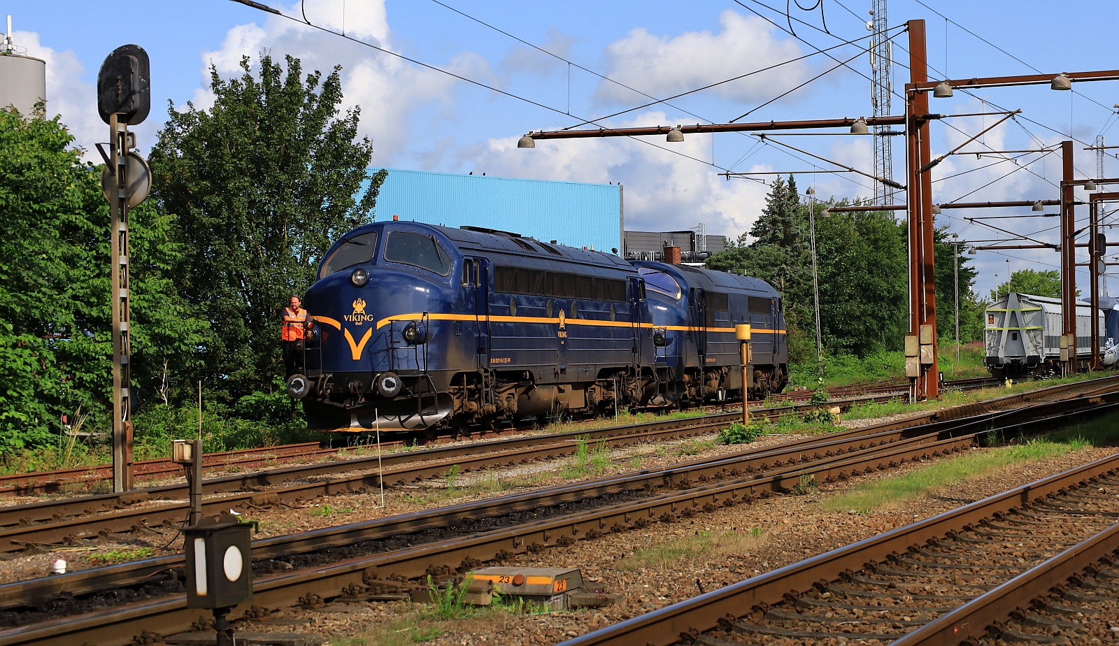 Die ehemalige DSB MX 1023 ist seit ihrer Übernahme durch die VIKINGRail blau lackiert. Sie verbringt das Wochenende in Pattburg 05.04.2025.