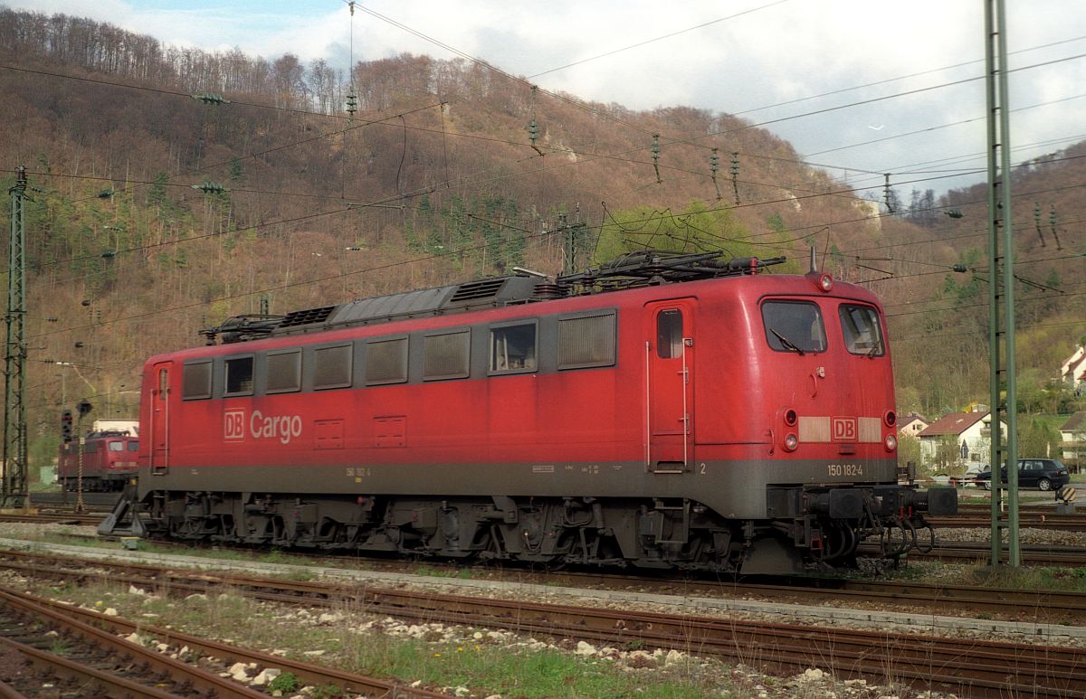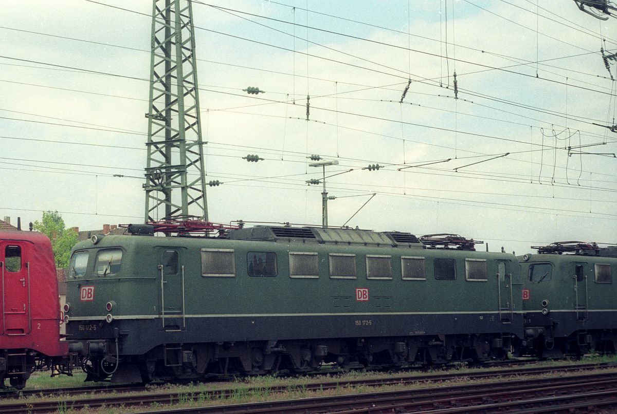 Hier steht die wohl einzige jemals in den Norden eingereiste E50, die E50 086/150 086-7 am Bhf Flensburg und wartet auf ihre "Abschiebung". Sie wurde fälschlicherweise über Rendsburg nach Flensburg geschickt und das obwohl die Hochbrücke für diesen Loktyp gesperrt war/ist. Flensburg 28.02.1999(DigiScan 011)