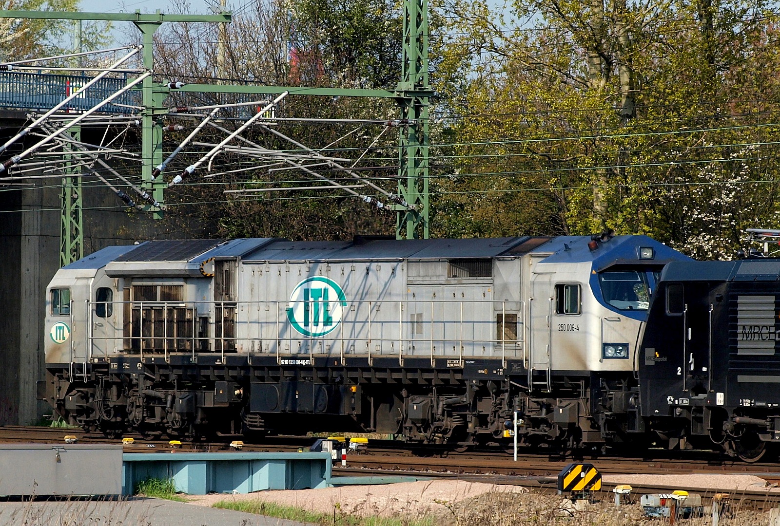 DB Testwochen OHE 3300 90 am Bü Zum Rollwagenzug 06.01.2005. Heute ist die Lok als V330.5 (1250 008) bei der HVLE im Einsatz.(DigiScan 025)