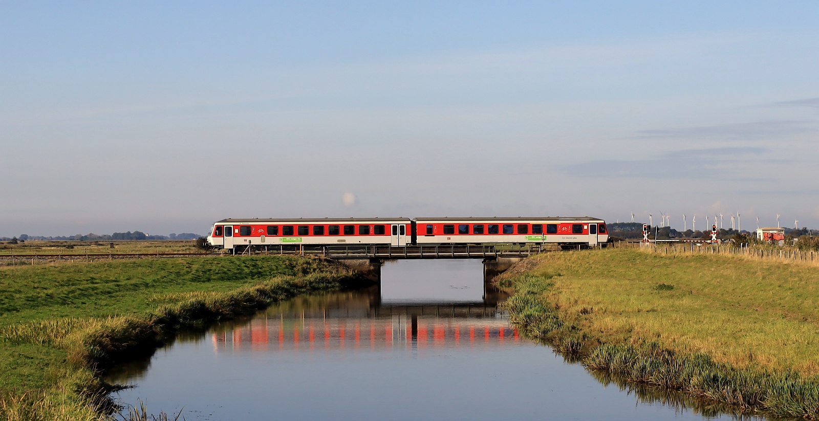 DB 628/928 501 "Hörnum" unterwegs nach Niebüll. Bongsieler Kanal 05.10.2024