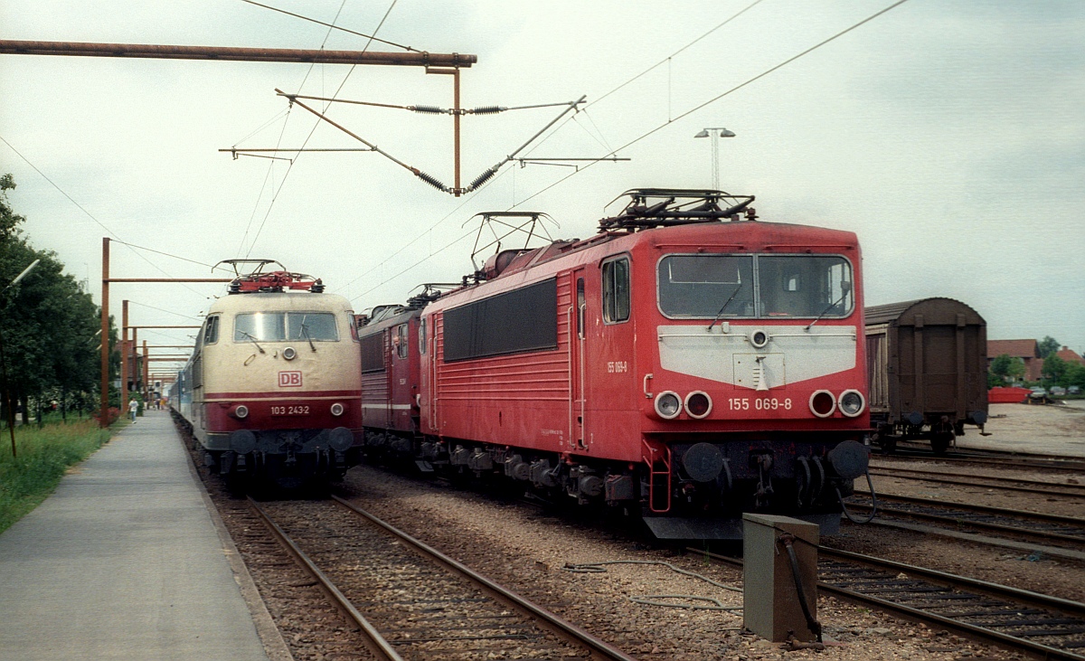 RADVE 103 222 schiebt DSB EB 3229 + EB 3230 in den 50Hz- Teil des Bhf. Pattburg/DK 30.04.2022