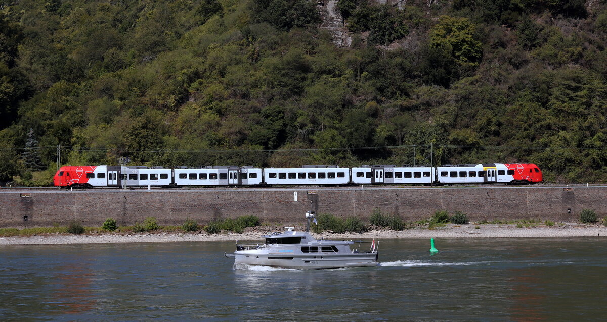 Die Viking Eir mit ihren 135m passt optisch gut vor den Doppel 429.1 des DB Süwex Engelsburg 05.08.2024