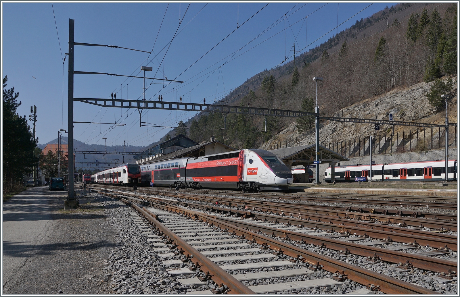 Leider stand der TGV Lyria 4411 etwas sehr weit entfernt, um ihn im Rangierbahnhof von Biel zwischen zwei Semaphor-Ausfahrsignalen zu fotografieren.