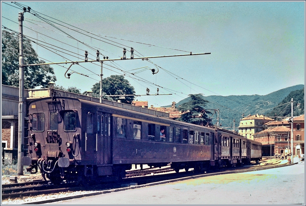 Der vierteilige Stadler FLIRT ETR 524 203 (RABe 524 203) der Trenord und TiLo erreicht am 03.11.2019 als S 10 (Bellinzona–Lugano–Chiasso–Como) den Endbahnhof Como San Giovanni.