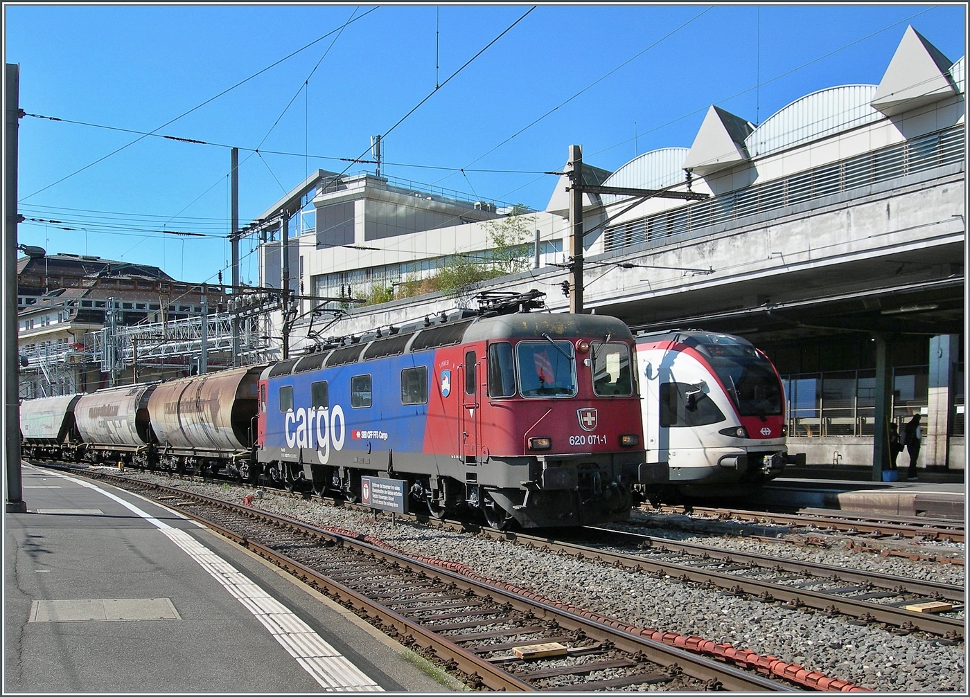 Die SBB Re 6/6 11671 (Re 620 071-1) Othmarsingen wartet mit ihrem  Spaghetti -Zug nach Torino in Lausanne auf die Weiterfahrt.