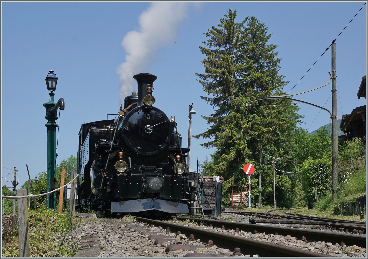 In Chaulin wird die LEB G 3/3 N° der Blonay Chamby Bahn mit Wasser und Kohle versorgt, im Hintergrund steht abgestellt die HG 3/4 N°3.