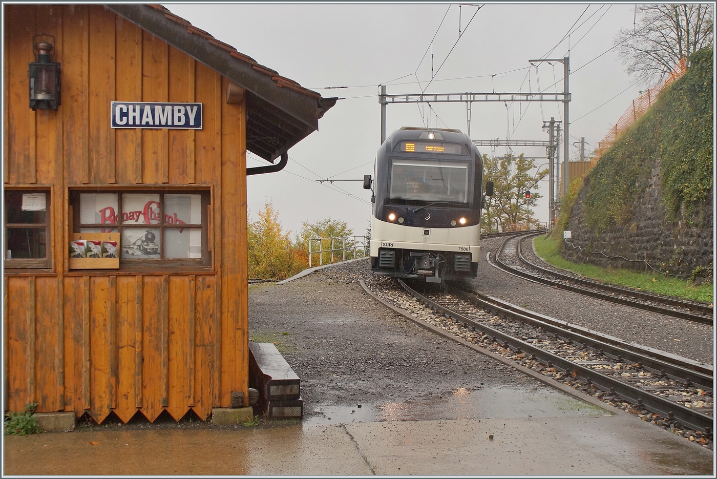 Die MOB (ex CEV MVR) HGem 2/2 2501 und der CEV MVR ABeh 2/6 7507 warten in Blonay auf ihre nächste Einsätze, während im Hintergrund der CEV MVR ABeh 2/6 7505 von Les Pléïades kommend den Bahnhof von Blonay erreicht.
