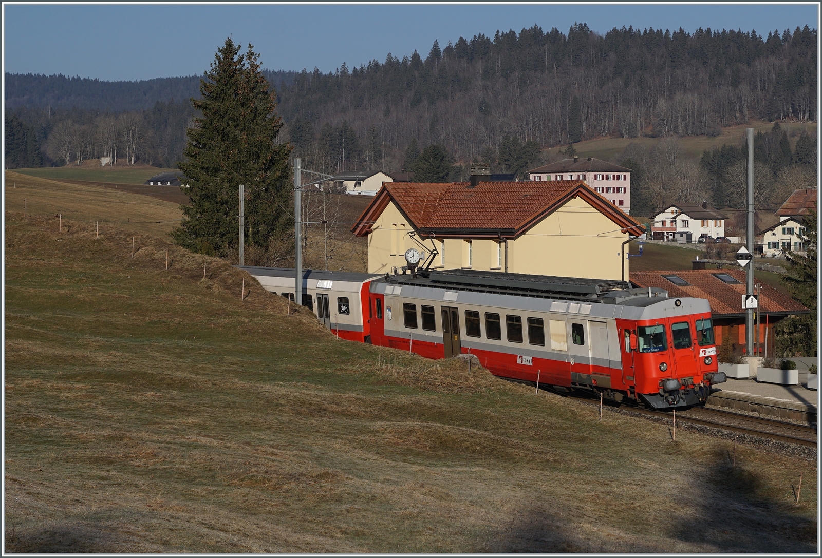 Ex Travys RBDe 560 174 unterm Regenbogen, daneben der Steuerwagen des Montafoner NPZ BS 10.221 und rechts der Montafoner Kurztriebwagen und dahinter der neue Steuerwagen der OeBB. Juni 2023.