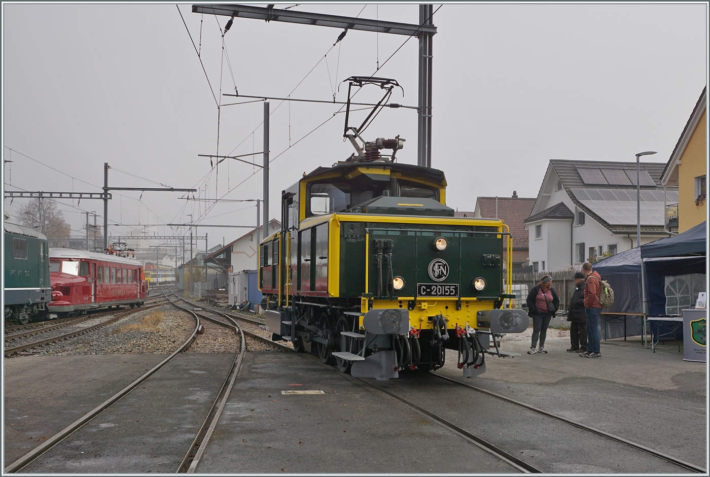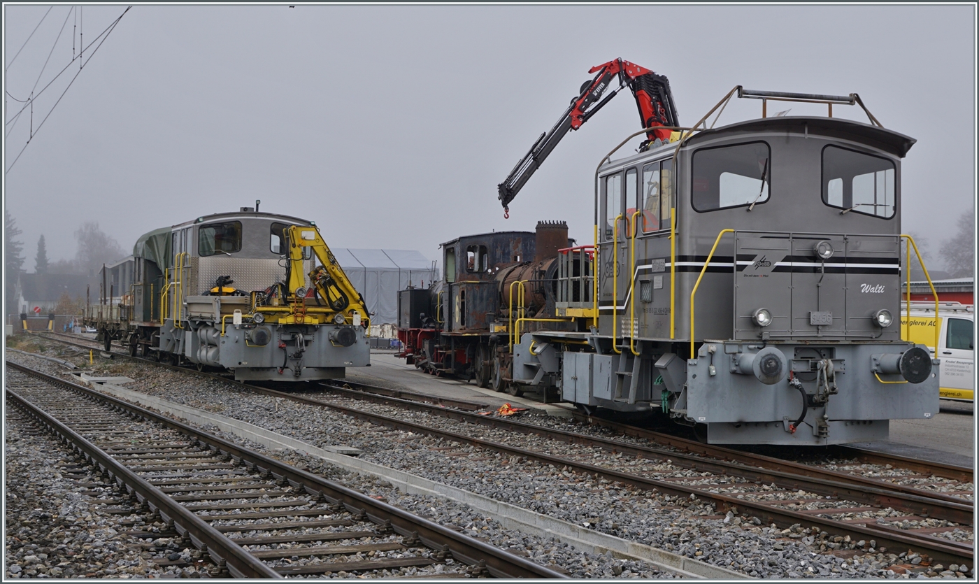 Im Rahmen der offenen Tür des Modellbahnclubs Balsthal zeigt sich die herrlich restaurierte SNCF C 20155 UIC N° 97 85 1 932-0 (ex SBB Ee 3/3 II 1615, ex SNCF C 20155) beim OeBB Depot von Balsthal. 8.Novembe 2025