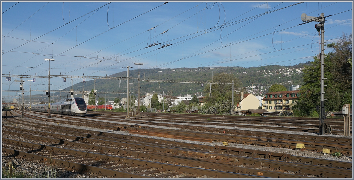 Der TEE in der eher ungewohnten Umgebung des Rangierbhanhofs von Biel.