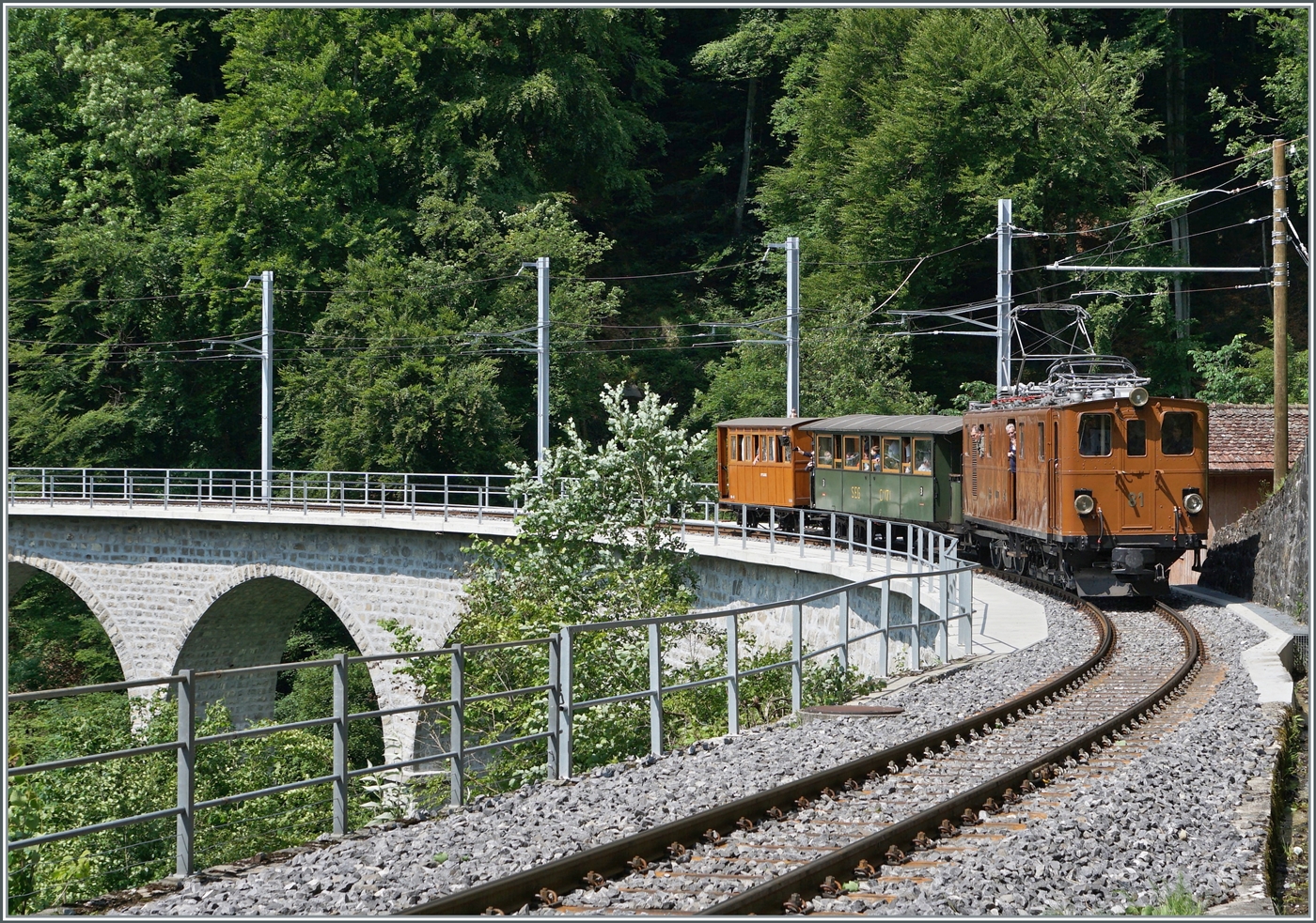 Die Blonay Chamby Bahn BB Ge 4/4 81 in Blonay bei der Abfahrt mit ihrem "Riviera Belle Epoque" Zug nach Vevey.