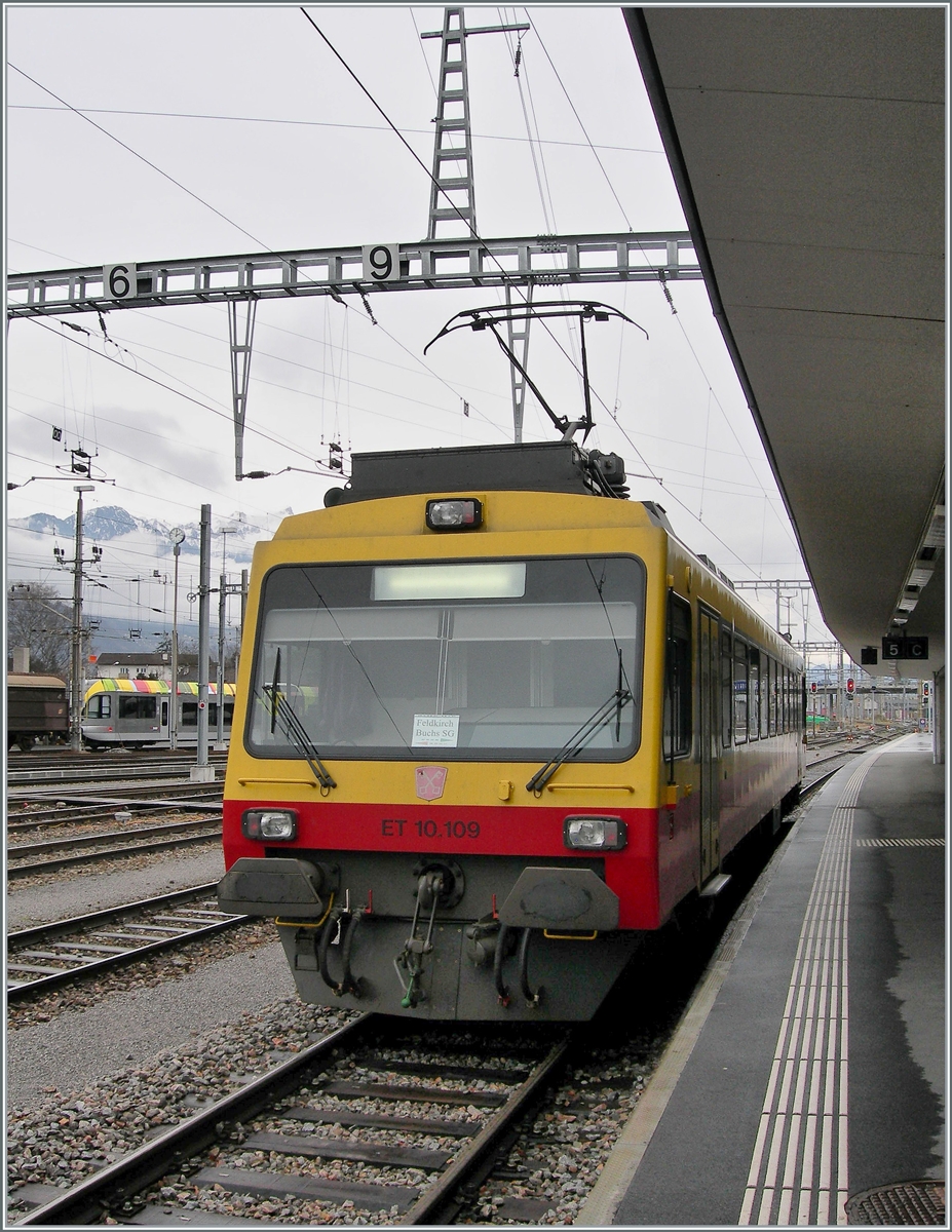 Ganz so fremd ist den MBS ET 10. 109 und 110 die Schweiz nicht; nicht nur wurden ie 2000/2001 von Stadler gebaut, wie hier zu sehen waren sie auch in der Schweiz im Einsatz, bzw. auf der Strecke Feldkirch - Buchs SG. 12. Jan. 2007