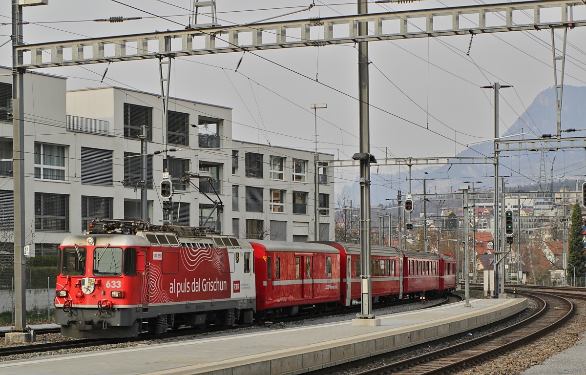 In Chur steht Capricorn ABe 4/16 3136 als Regionalzug nach Landquart parat. Januar 2023.