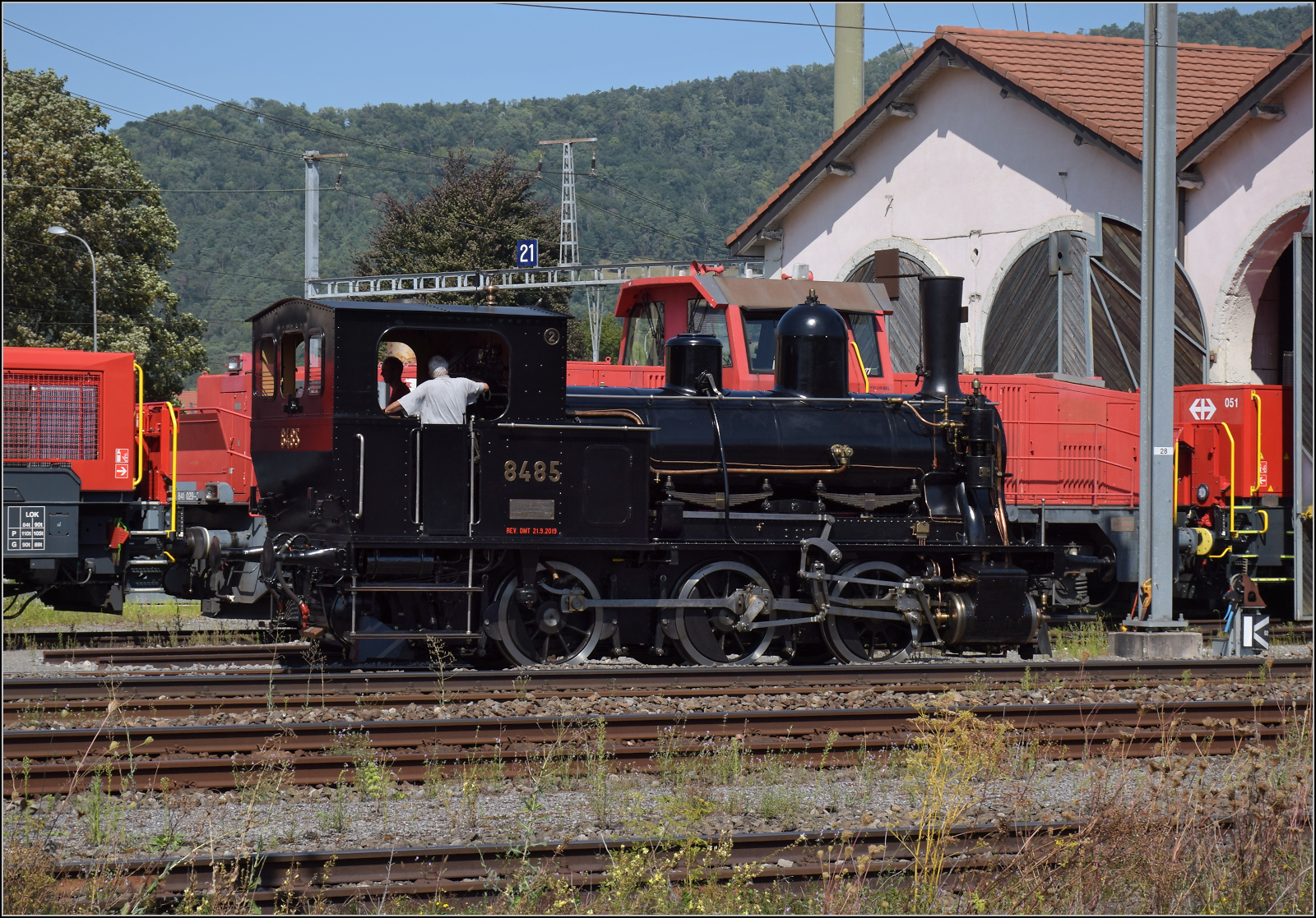 150 Jahre Schweizer Eisenbahn: Auch die formschöne Schlepptenderdampflok B 3/4 1367 war am "Drehscheibenfest" in Delémont im Einsatz, hier zeigt sie sich mit einen Extrauzug kurz vor der Abfahrt nach Glovelier.
