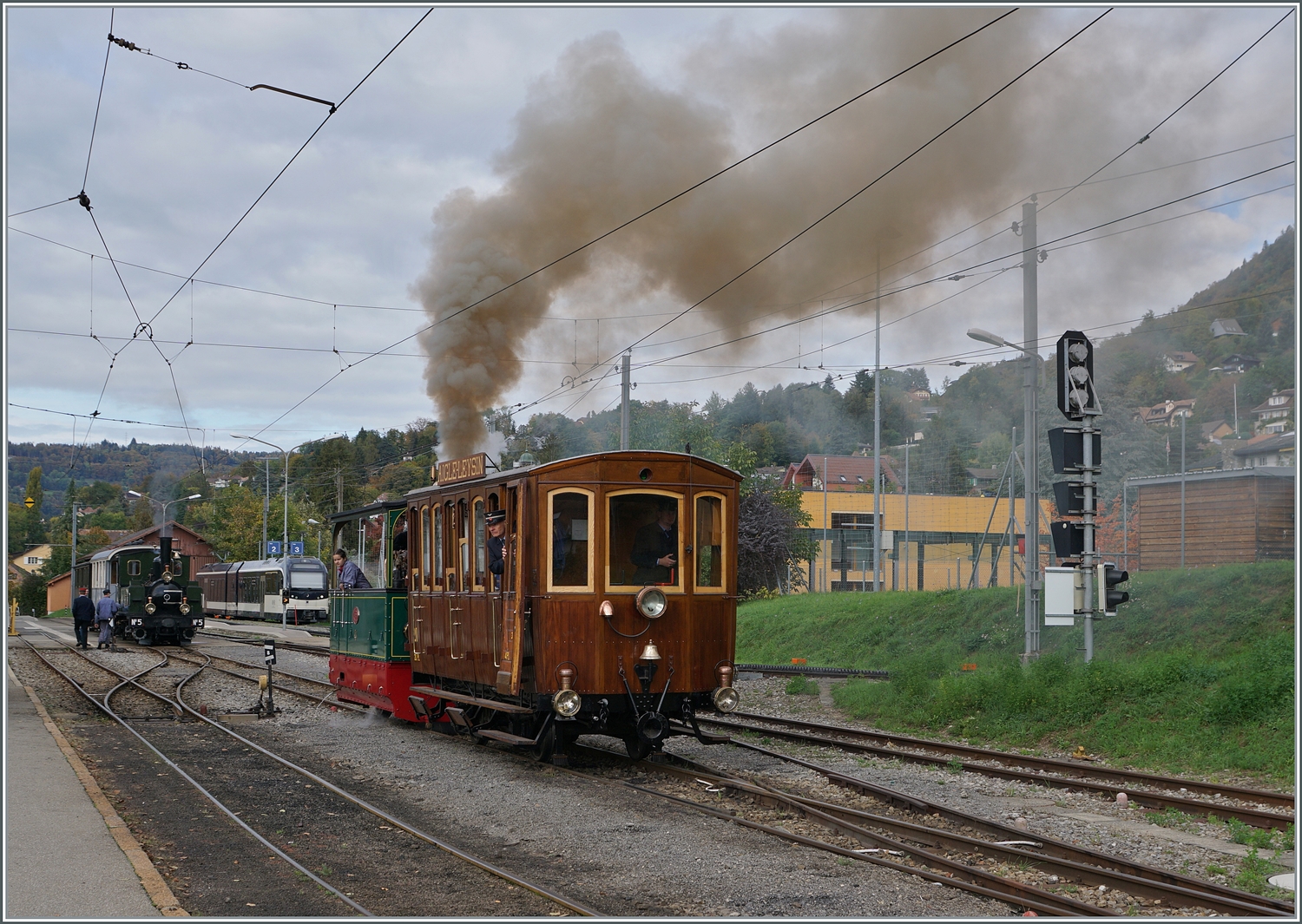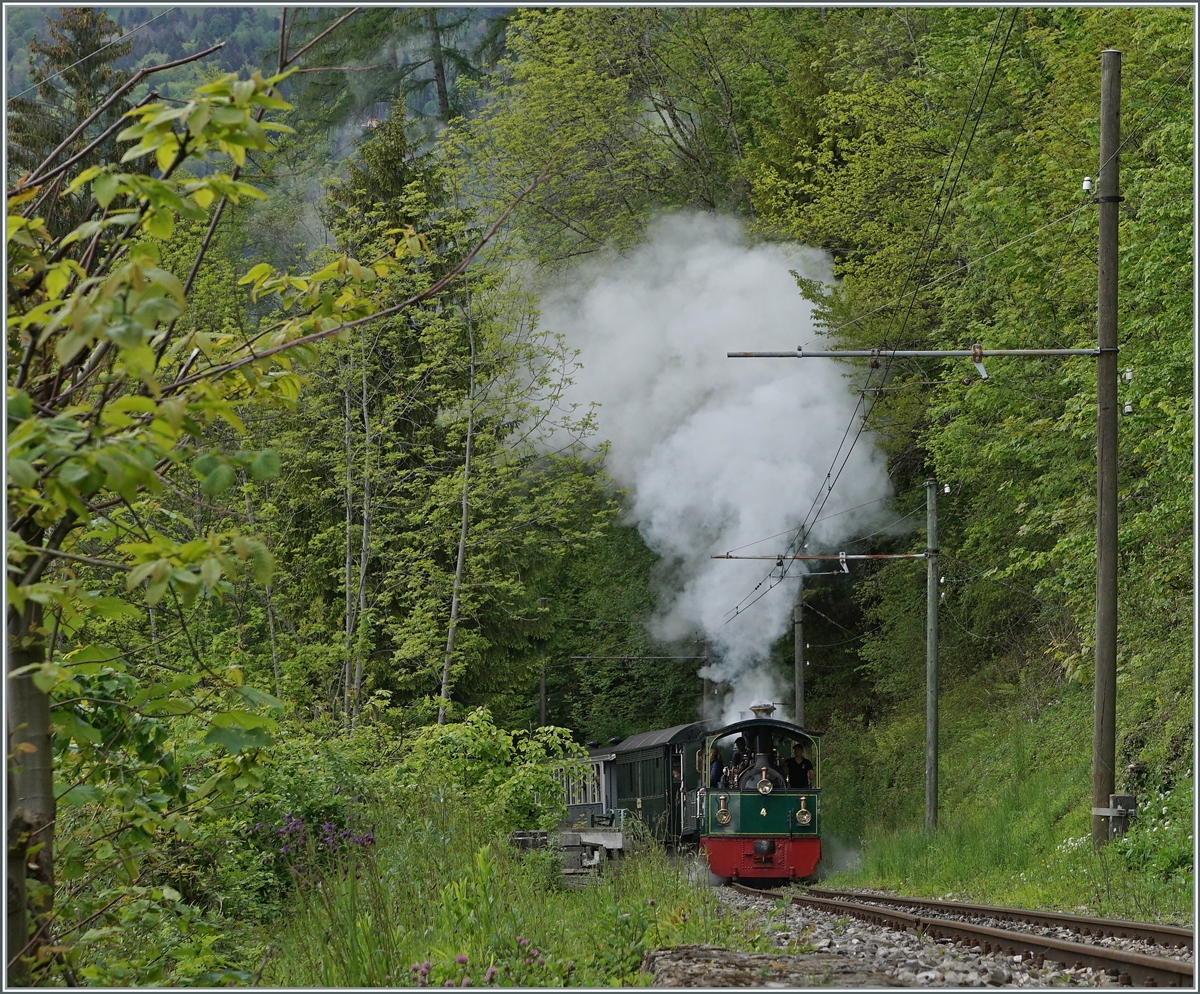 Die G 2/2 N° 4 RIMINI (Baujahr 1900 / Krauss) der Blonay-Chamby Bahn wartet mit einem der letzten Züge der Saison auf die Abfahrt nach Chaulin.