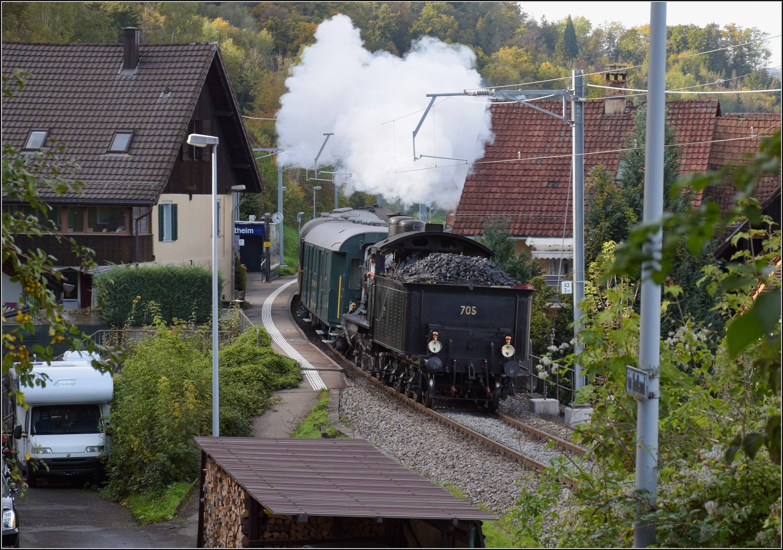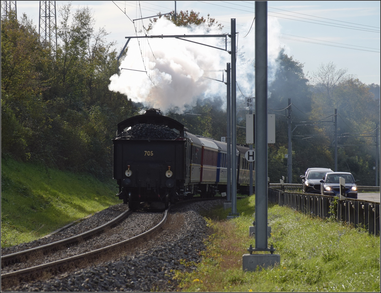 Die SBB (Historic) A 3/5 705 mit einem Extrazug in Biel/Bienne. 25. Juni 2011