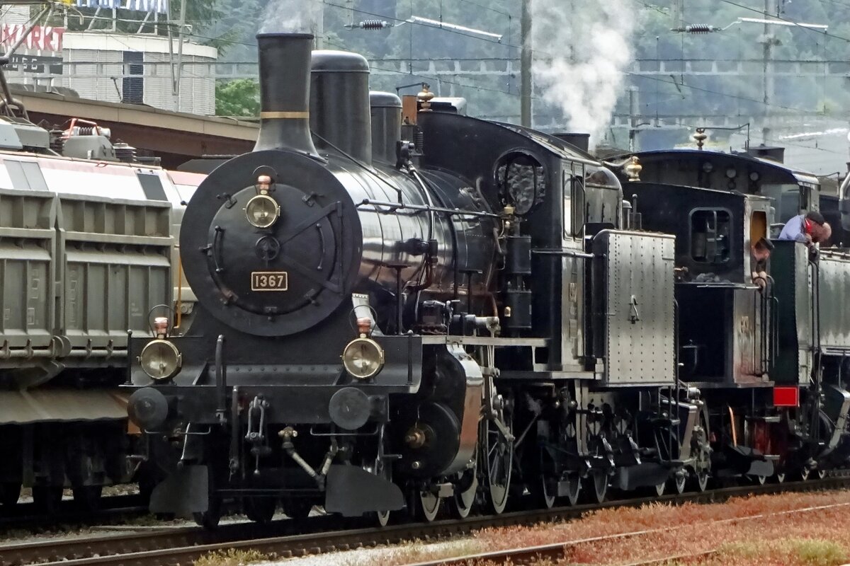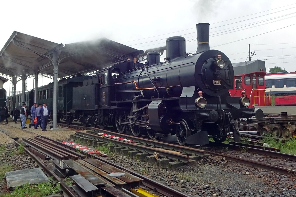 Am 26 Mai 2019 findet 1367 sichselbst mit Dampfzug zurück in das bw von Verein Mikado 1244 in Brugg AG.