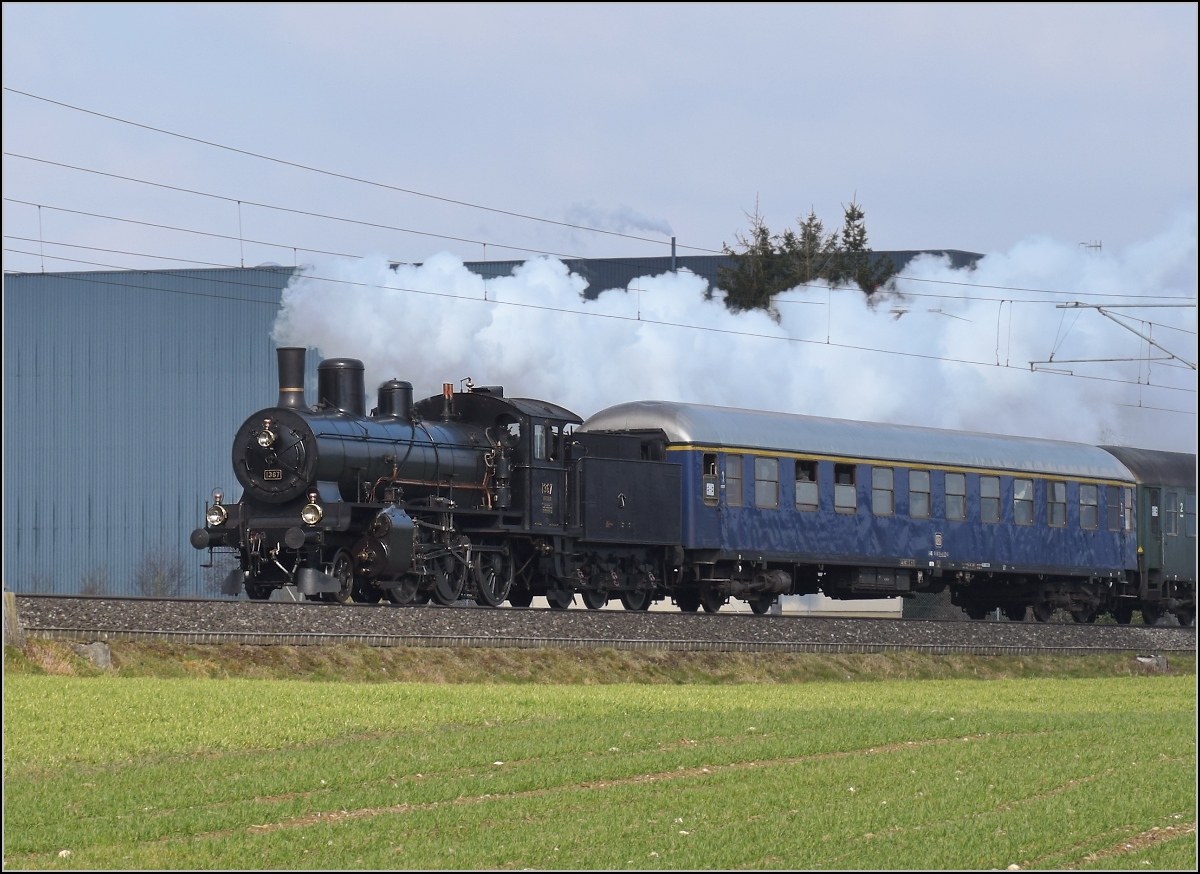 B 3/4 1367 muss sich in der Steigung des Birrfelds trotz Nachschubhilfe mächtig anstrengen. Birr, März 2018.