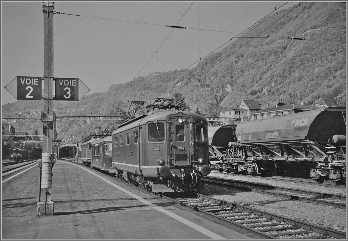 Der Tm 98 85 5232 175-0 CH-JÜST mit der ungewohnt grünen Front steht in Villeneuve.