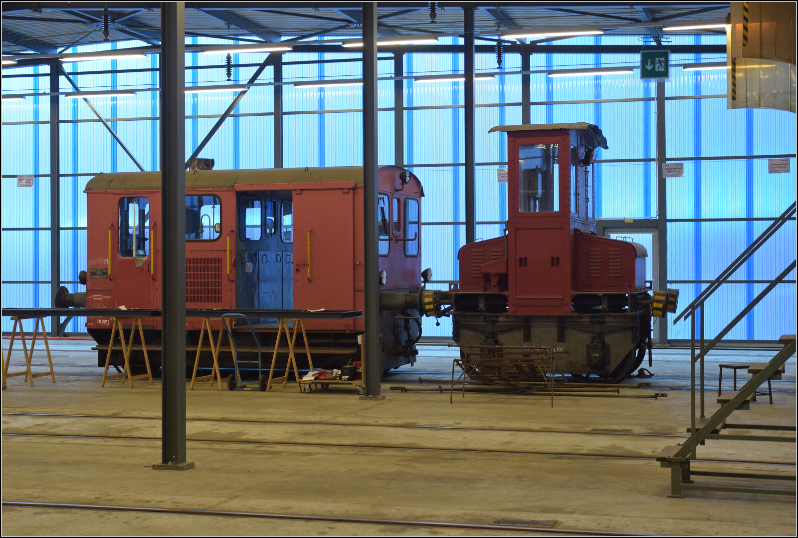 Wer ganz genau hinschaut, findet noch eine Besonderheit. Das Radlager des Tintenfisch ist mit SCB beschriftet. Das wäre somit von der Schweizer Centralbahn und deutlich älter als das Akkurangiergerät selber.