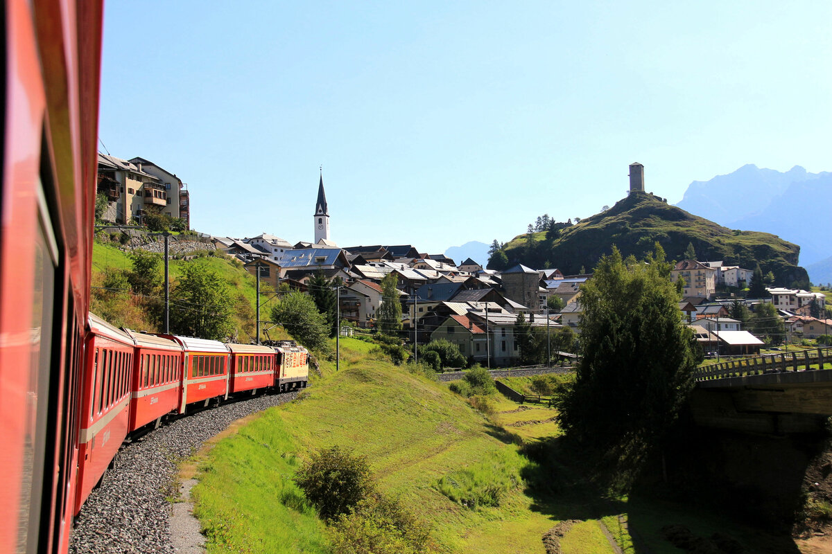 Die Hakone Tozan Bahn, Partnerbahn der RhB: Noch ein Blick auf die Lok 622 "Hakone Tozan Densha" zwischen Saas und Klosters Platz. 24.August 2017