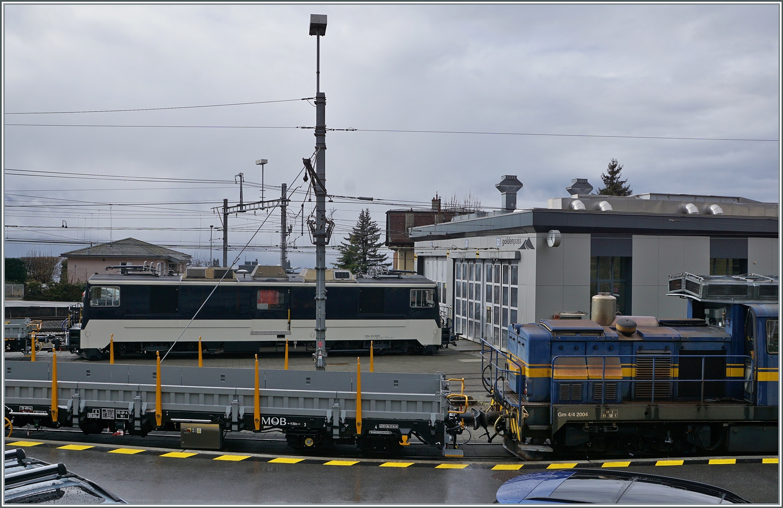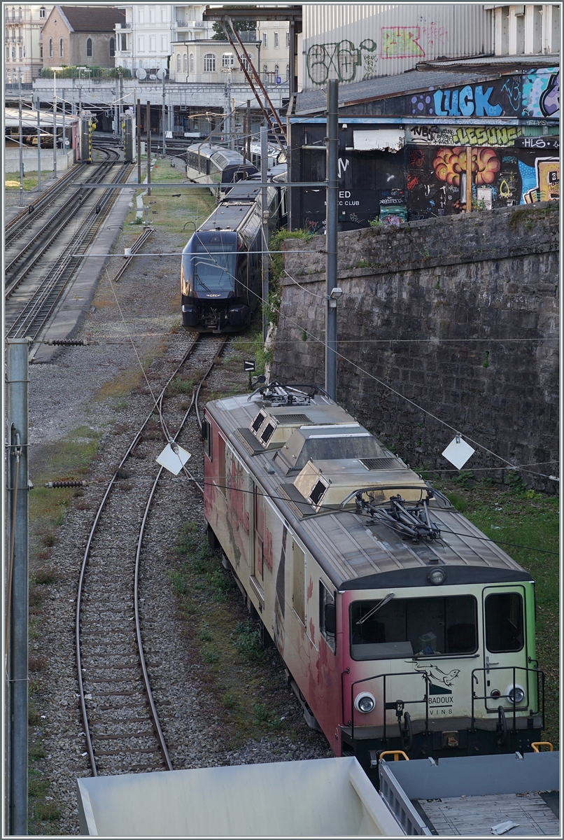 Von links nach rechts: Der CEV MVR Beh 2/4 72 "Astro Pleiades", ein CEV MVR GTW Be 2/6 und die MOB GDe 4/4 "Interlaken" in Blonay.