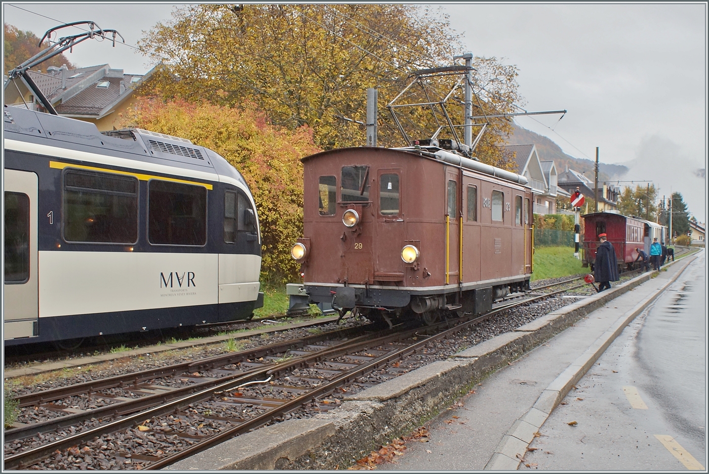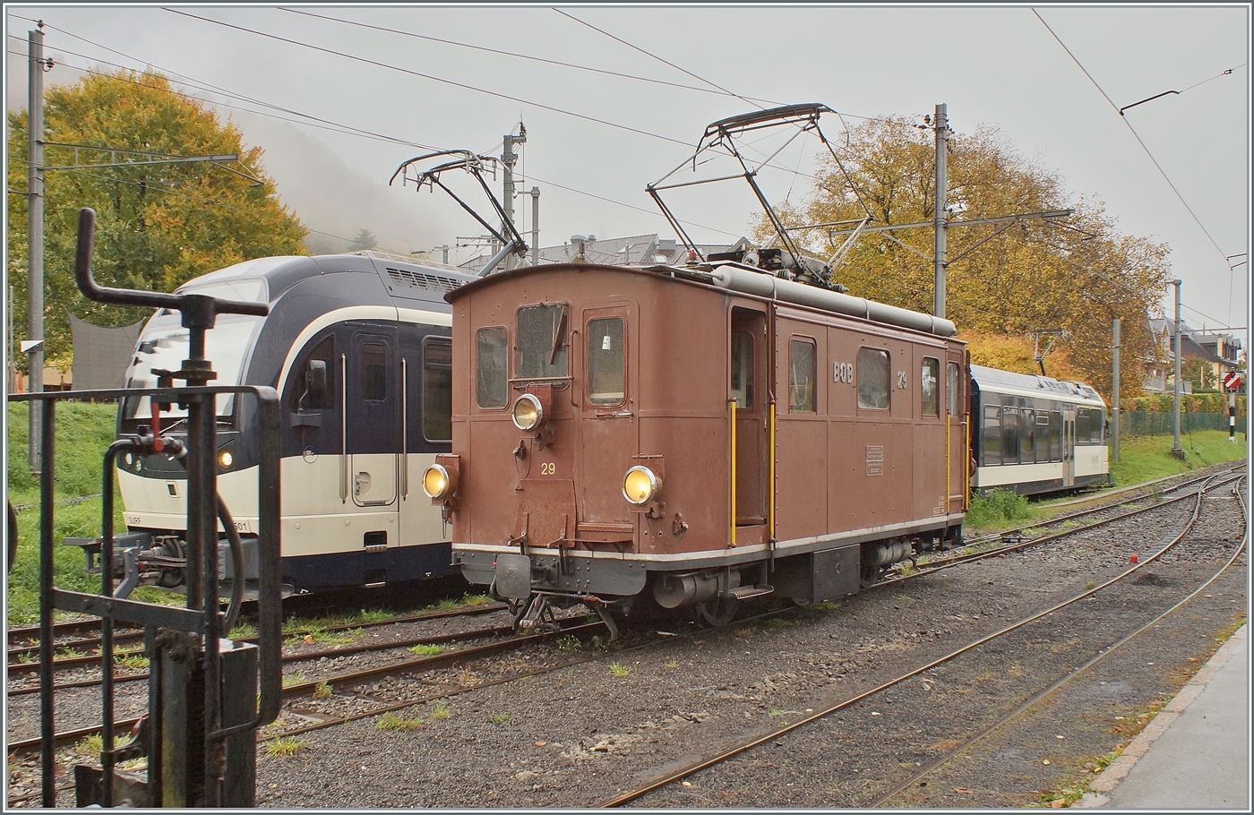 Die BOB HGe 3/3 29, nun bei der B-C, beim Rangieren in Blonay.