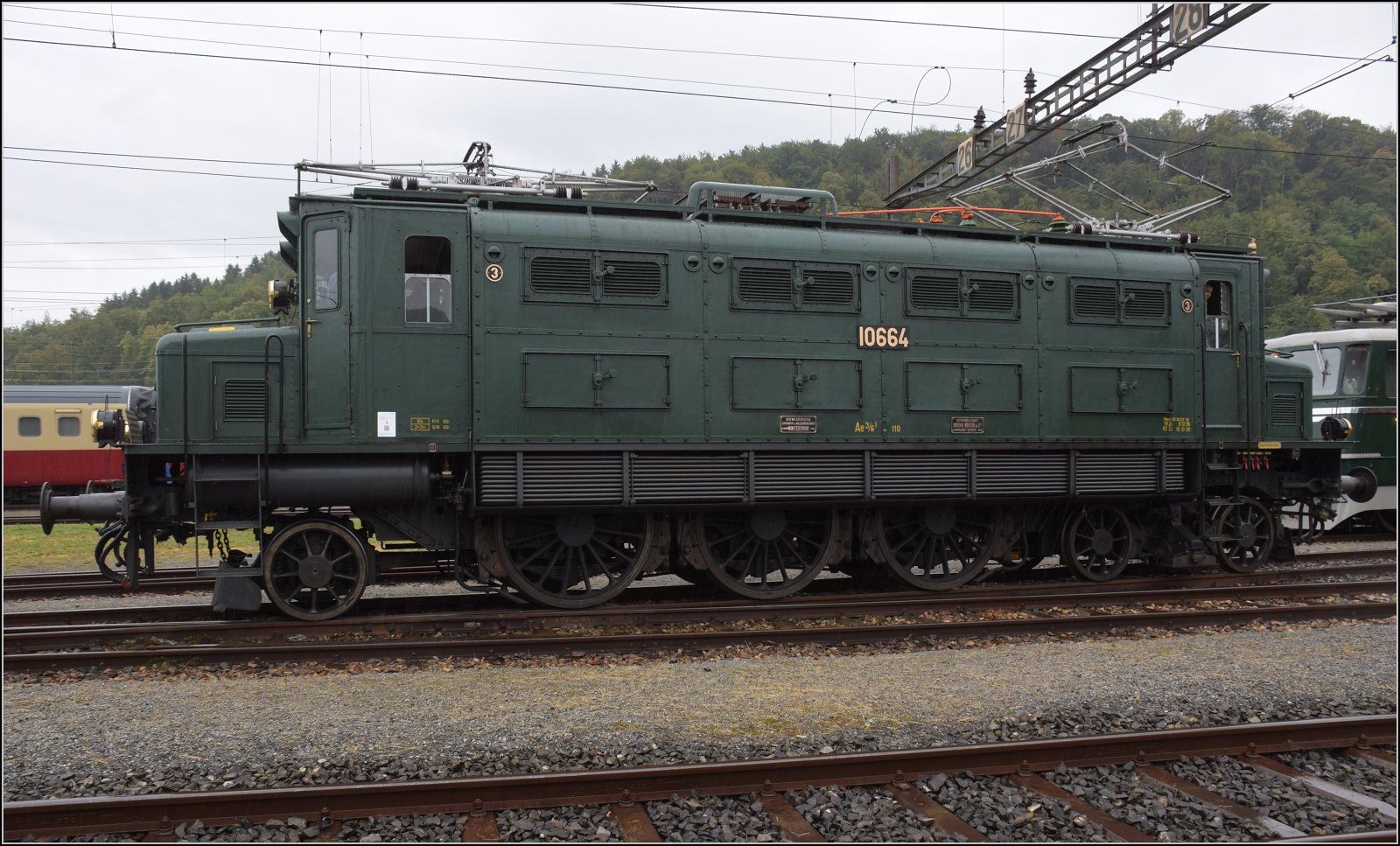 Die SBB Ae 3/6 I 10596 mit einem Postzug in Aarau.