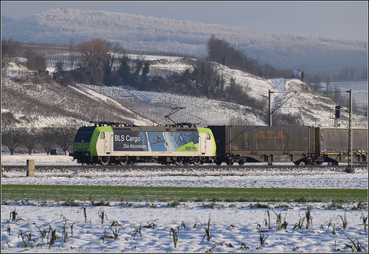 Am 6 Juni 2015 verlasst CrossRail 185 595 samt GTS Containerzug Erstfeld.