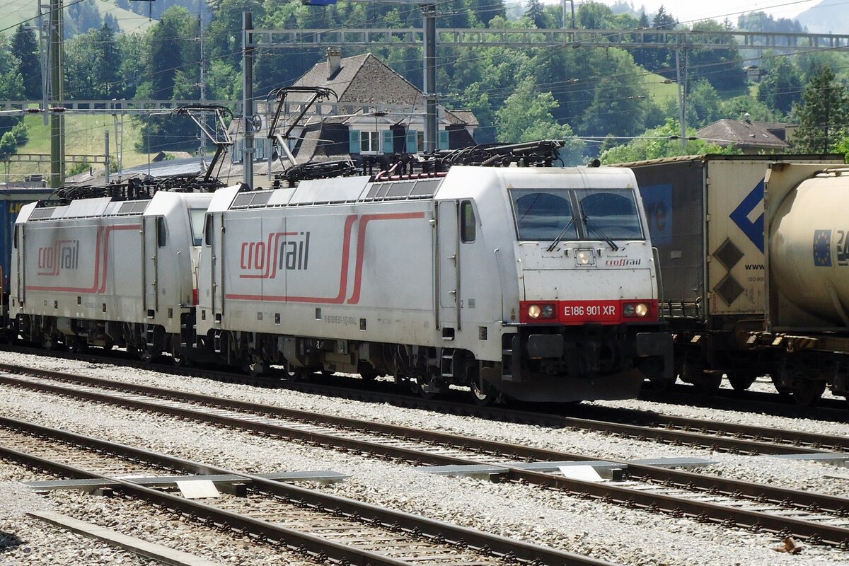 Hin und her. Hin: Am 21 Februar 2021 passiert BLS 186 109 mit ein KLV Hulten.