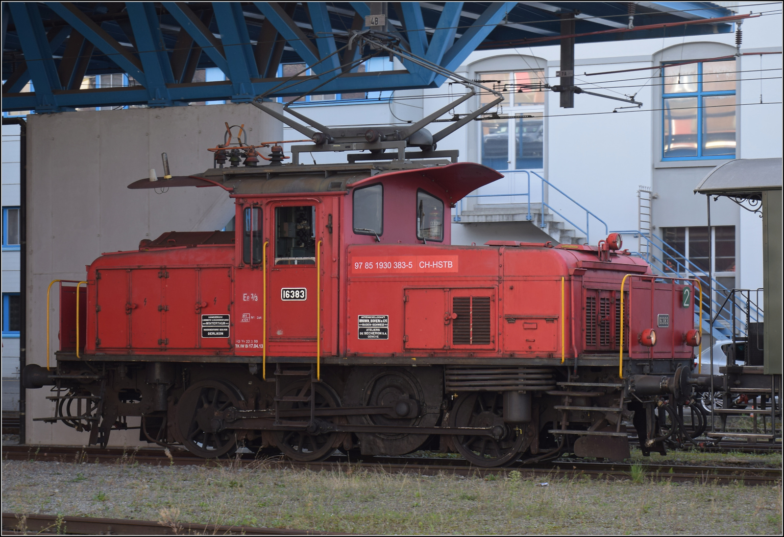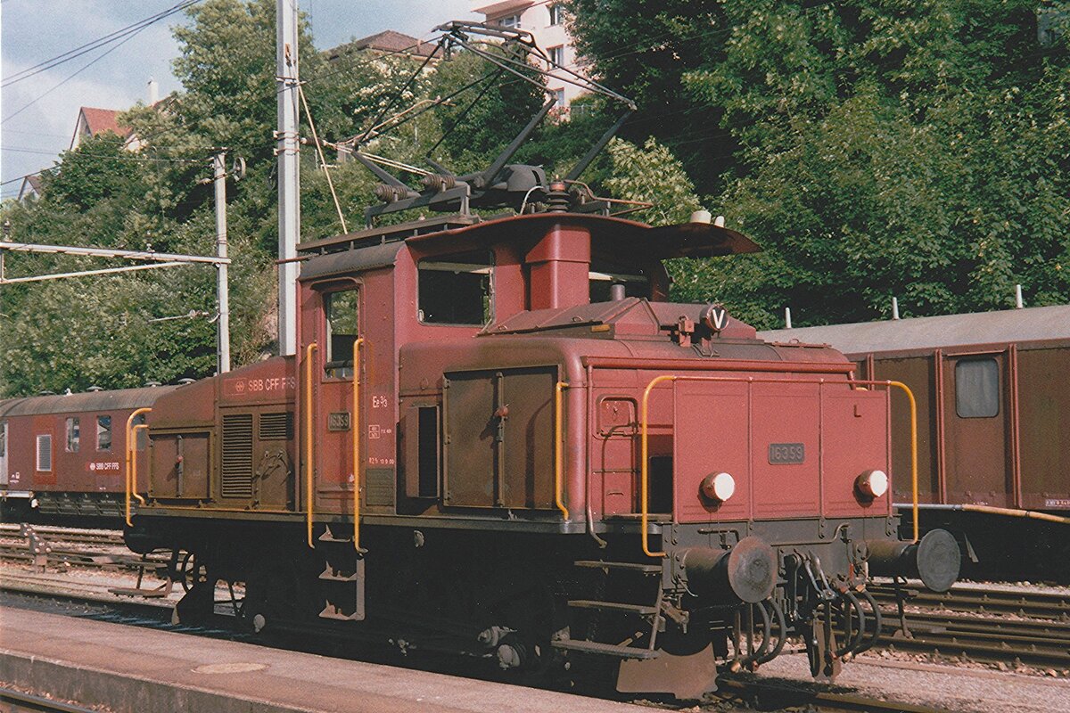 SBB: E 3/3 16408 (1944) auf Rangierfahrt zur Werkstätte Biel mit EW |V am 10. Dezember 2014.