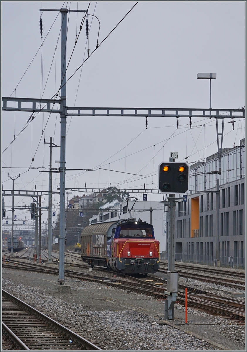 Neben SBB Re 6/6 um Eem 923 zeigt sich auch ein Dispo-Zug im Bahnhof von Lausanne Triage. 4. Feb. 2022
