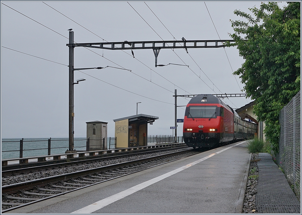 Die SBB Re 4/4 II 11322 (Re 420 322-0) und eine weiter sind mit dem leeren "Spaghetti"-Zug von Italien nach Frankreich bei St-Saphorin unterwegs.