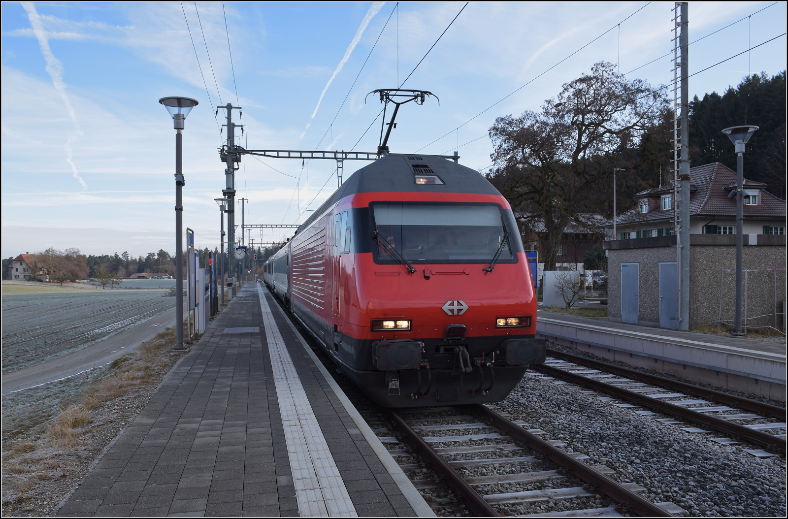 Die Stromabnehmerstellung bereits LBT konform, wartet die SBB Re 460 080-5 "MIGROS" in Domodossla mit ihrem IC 1076 nach Basel SBB auf die Abfahrt.