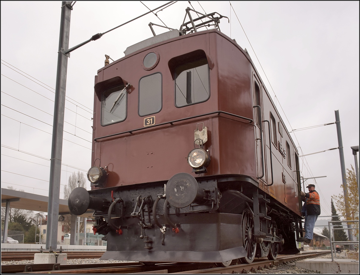 Hommage an eine schräge Schweizer Rennsemmel... Te 2/3 31 der BLS war ursprünglich weder Triebwagen noch Lok, sondern an einen Wagen fest gekoppelt und daher als CFe 2/6 784 bezeichnet. Nur zwei dieser seltsamen Gespanne wurden gebaut 1925 und als Halbesel bezeichnet, 1953 wurde die Triebeinheit getrennt und zu einer Rangierlok Te 2/3 umgebaut. Hier beim Zubringerdienst zum Bernischen Schwingfest. Huttwil, Juli 2017.
