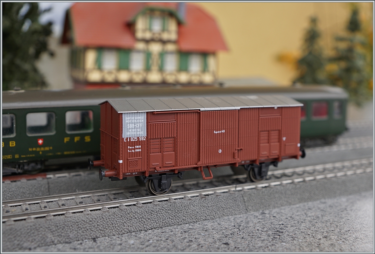 Abstecher zur Coni'fer. Ein hübsch restaurierter gedeckter Güterwagen aus der Schweiz, der offenbar zuletzt als Dienstwagen in Betrieb war. 40 85 CFF-SBB 94 05 033-3 X in Les Hôpitaux-Neufs. Mai 2023.