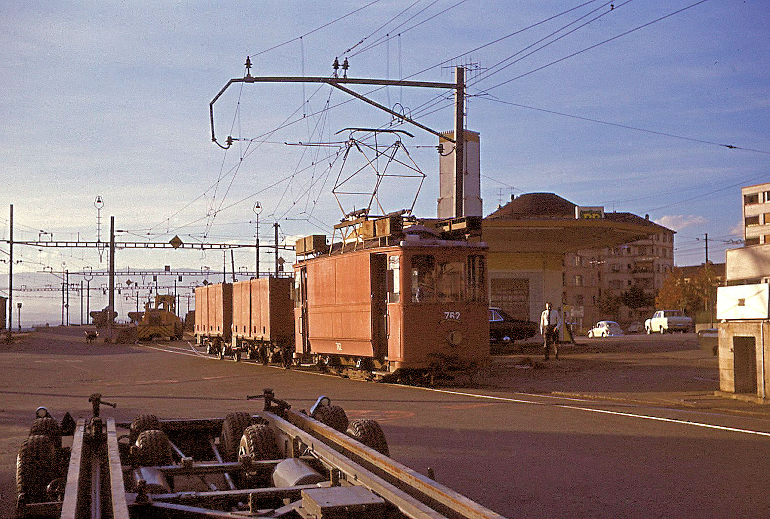 Der Be 4/4 N° 27 wartet auf Gleis zwei auf die Ankunft und Rückfahrt des Regionalzugs um dann als Leerfahrt nach Echallens zu fahren.