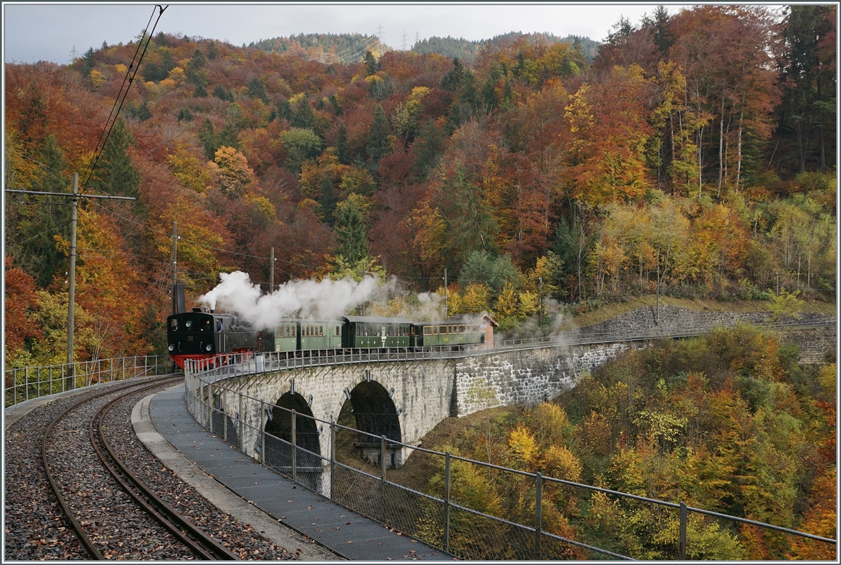 "La DER 2021" (Saison Abschluss 2021) der Blonay Chamby Bahn mit der G 2x 2/2 N° 105 bei Vers chez Robert mit dem Baye de Clarens Viadkut im Hintergrund.