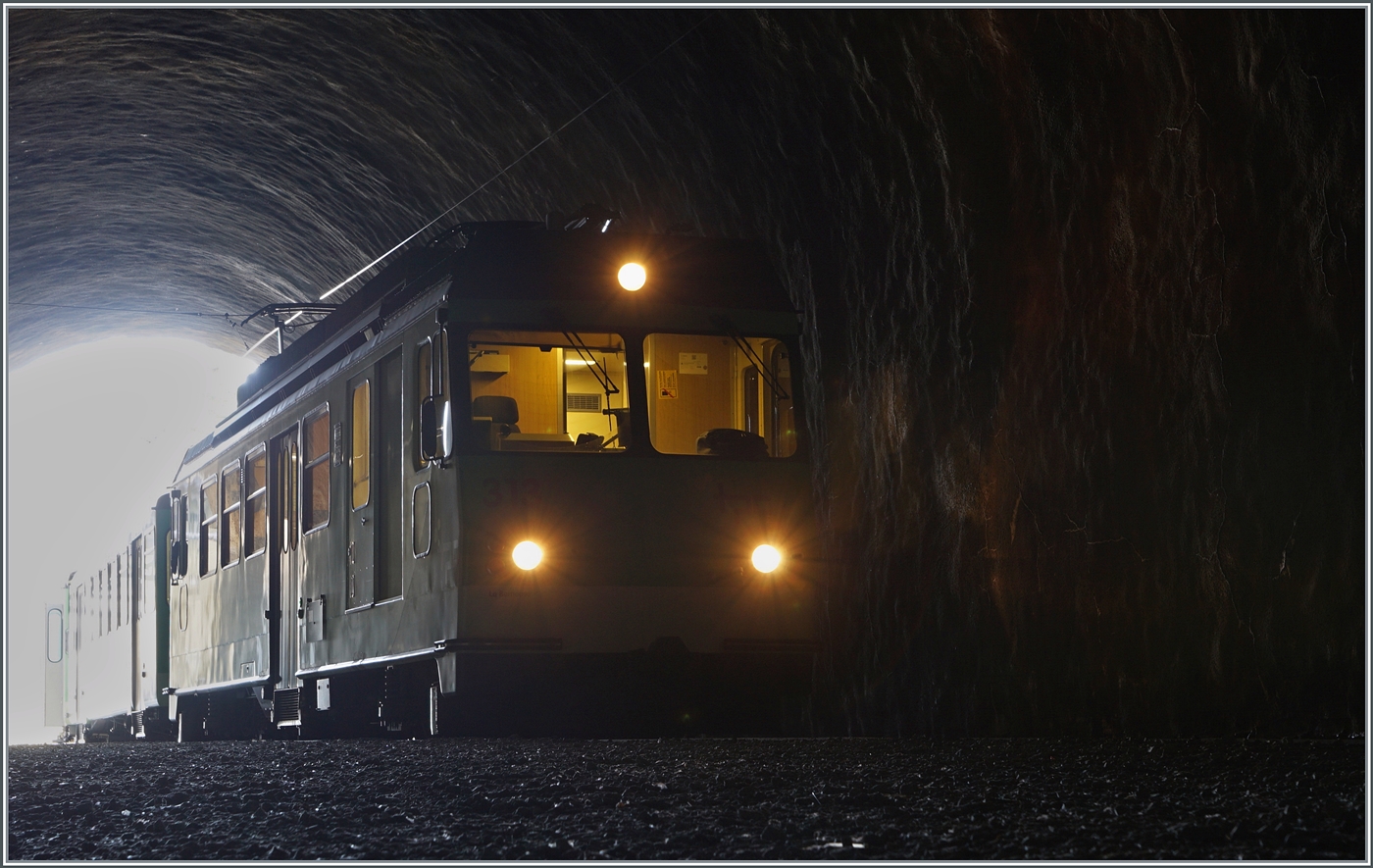 Der TPC AL BDeh 4/4 312 mit seinem Bt 361 wartet in Aigle auf die Abfahrt nach Leysin.