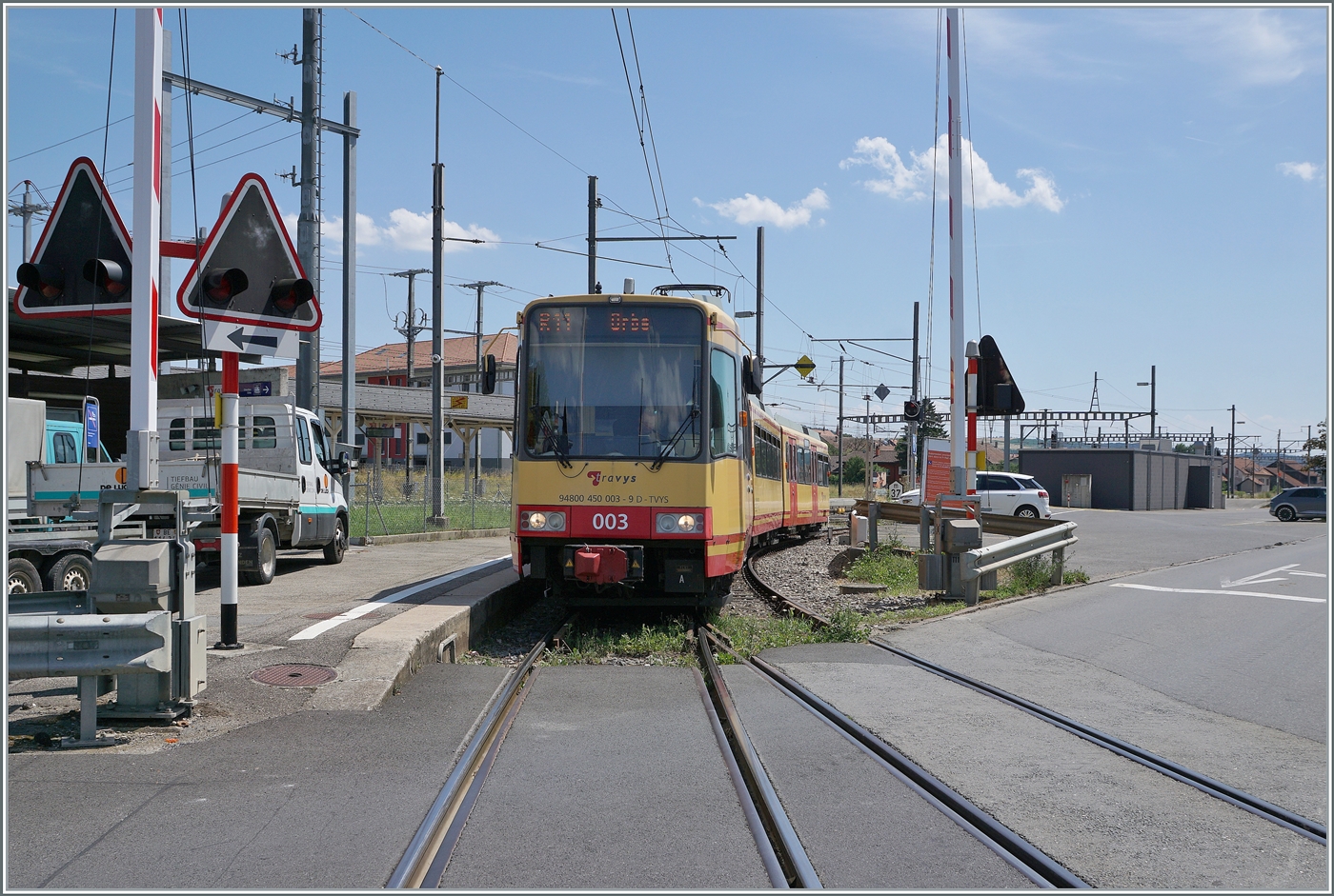 Der O-C Be 2/2 14 wartet in Orbe auf seine nächste Fahrt nach Chavornay.