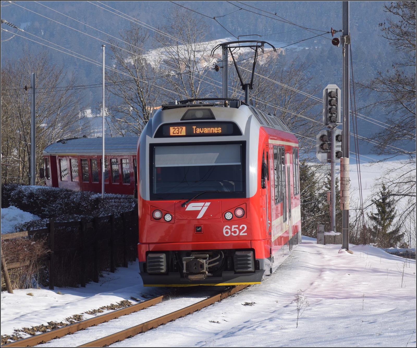 ein schönes Bild vom neuen CJ Triebwagenzug. Die CJ erhält fünf dreiteilige Züge und einen einteiligen Züge. Die Bezeichnung lautet Be 2/4 + B + ABe 2/4 671 - 675 und Be 2/4 + ABe 2/4 676.