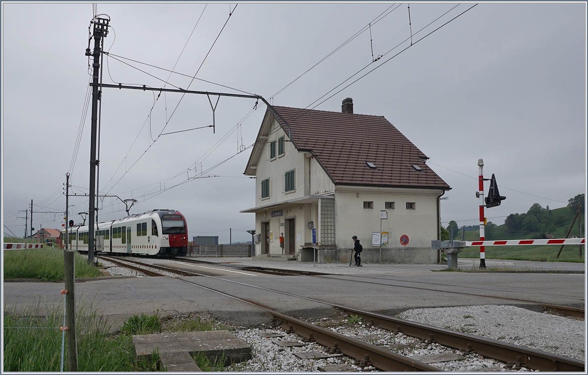 Der TPF Be 2/4 101/ B / ABe 2/4 101 von Palézieux nach Bulle als S50 unterwegs beim Halt in La Verrerie.
