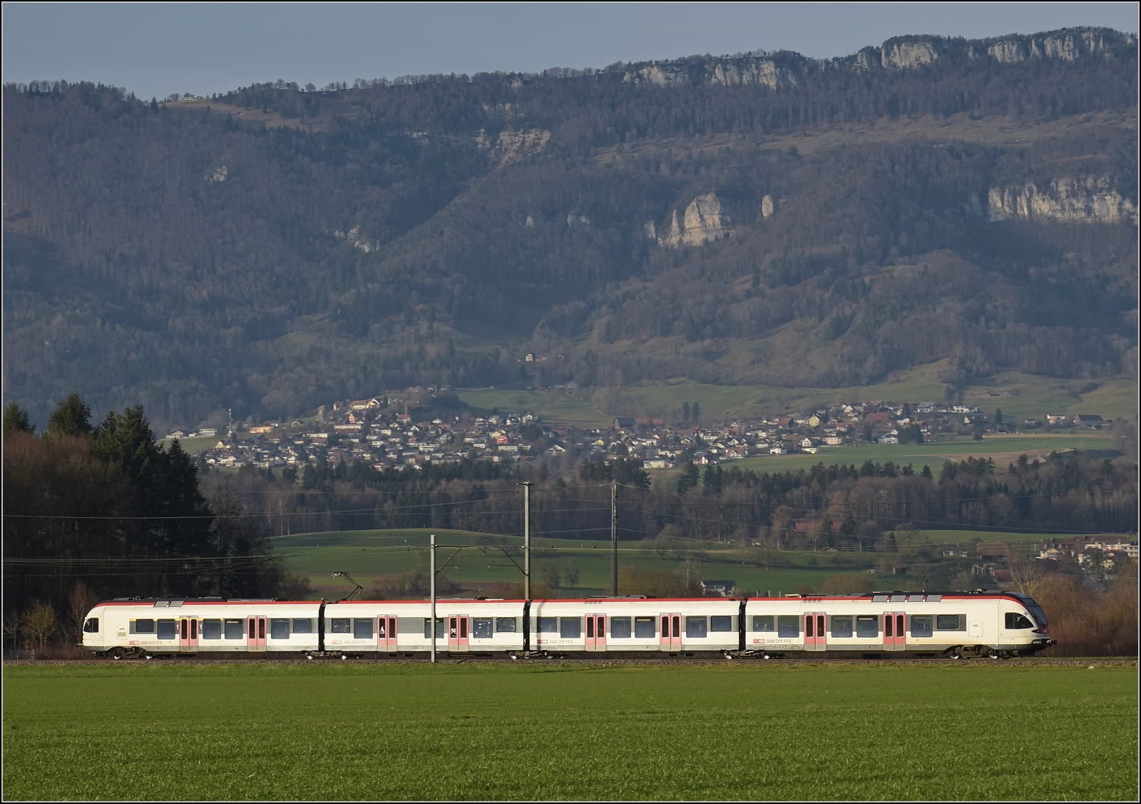 RABDe 500 029 'Eduard Spelterini' und RABDe 500 030 'Louis Chevrolet' bei Deitingen. Dezember 2023.